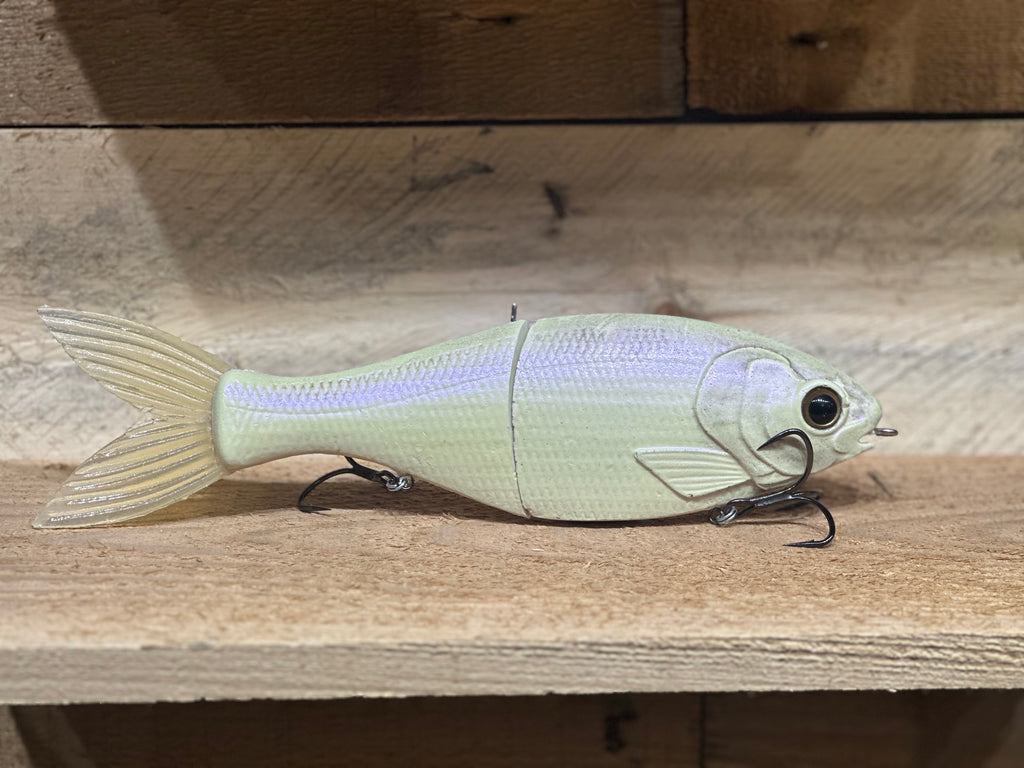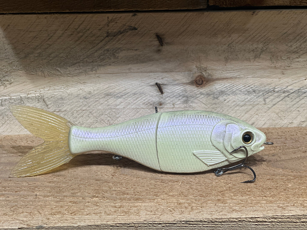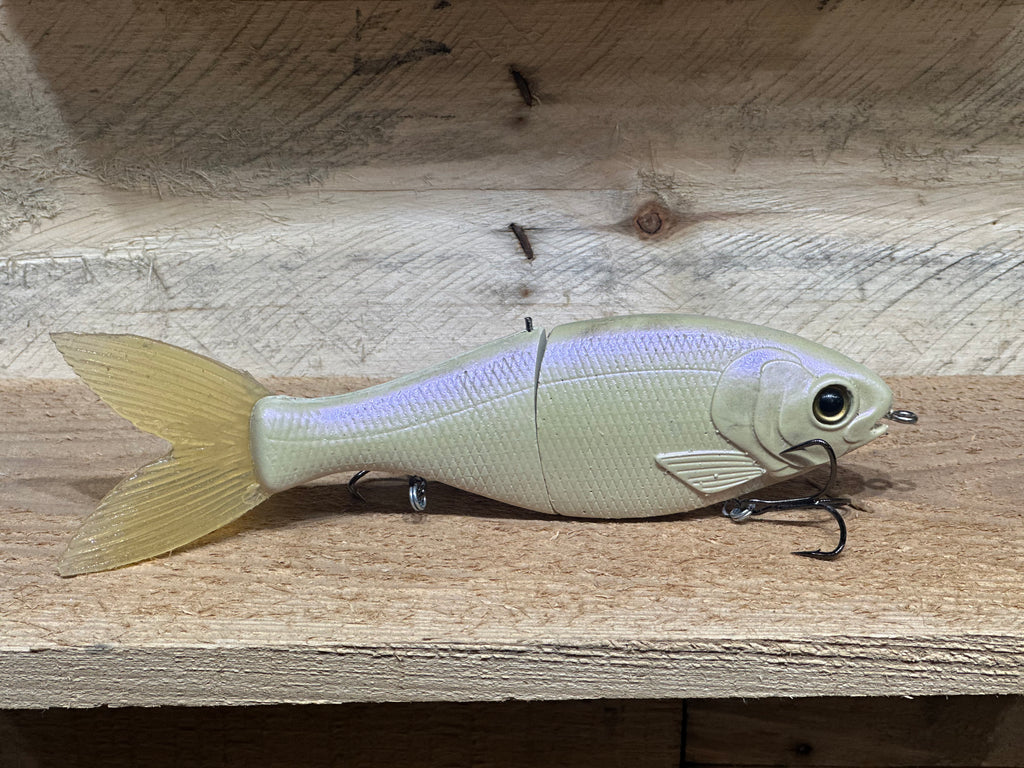 This is our renowned V Joint glide and has a super slow wide gliding action. This bait is meant to be worked slow and around docks or laydowns or any other type of cover. The super wide gliding action that it has allows you to cover maximum water per cast that is made. This bait shines year round in all conditions from the dead of summer to the dead of winter. DISCLAIMER: This bait is meant to be fished slow and methodical, it takes a minute to master the technique but once you do you will be getting wide glides every cast with no issue!