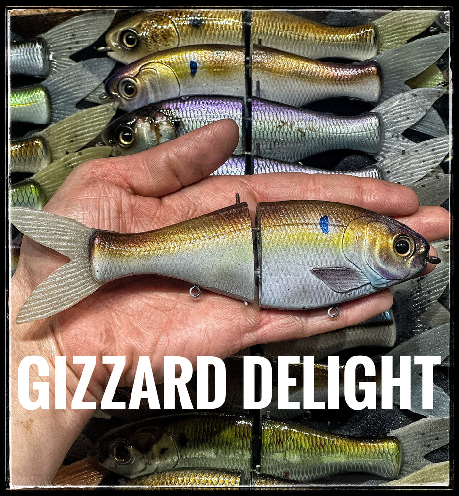 The Bull Shad Trick Shad! This bait comes in 7". Weight is around 2.5-2.75oz as each one is tuned by hand so weight will vary. Colors come in Gizzard Shad, Bone, and Thrizzard.